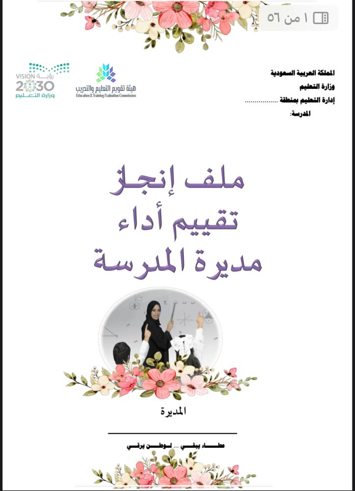 يمثل ملف انجاز مديرة المدرسة وثيقة شاملة واحترافية توثق جميع الجهود والإنجازات التي قامت بها مديرة المدرسة في الجوانب الإدارية والقيادية والتعليمية. لا يقتصر هذا الملف على سرد البيانات أو عرض الشهادات، بل يُعد دليلاً عمليًا يوضح رؤية المديرة ورسالتها وخططها المستقبلية لتطوير البيئة التعليمية. كما يُبرز مهارات القيادة التربوية التي تمتلكها، وكيفية إدارتها للموارد البشرية والمالية، وقدرتها على مواجهة التحديات وتحقيق التميز في الأداء المدرسي. ومن خلال هذا الملف يمكن لإدارة التعليم والجهات المعنية تقييم كفاءتها ومنحها الترقيات المستحقة بناءً على معايير واضحة وموثقة.