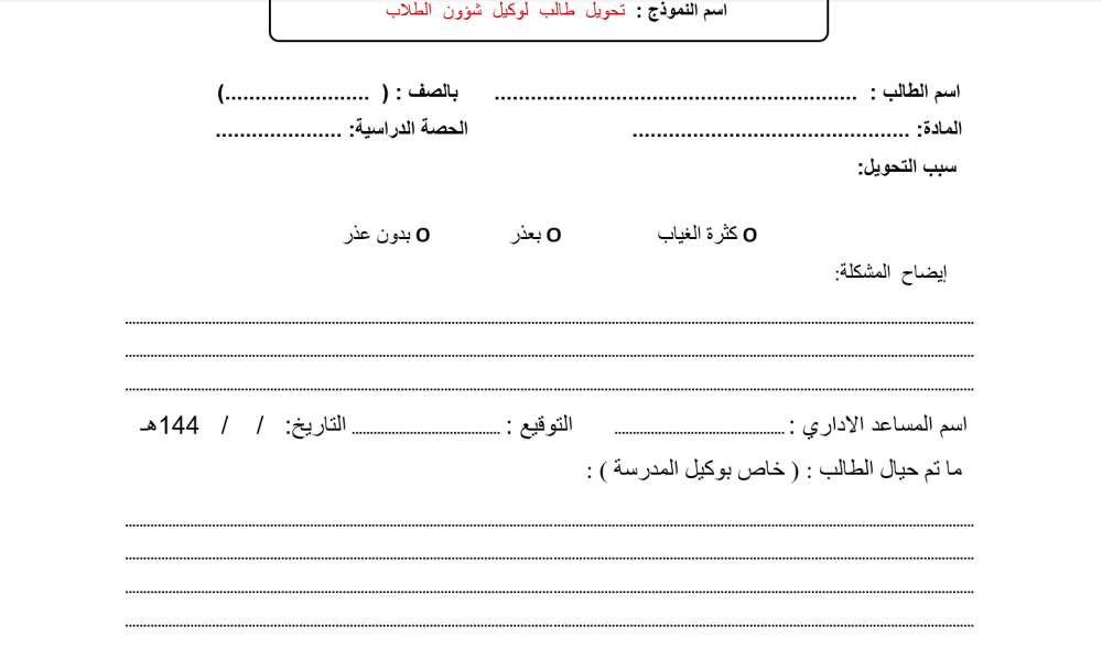 نموذج تحويل طالب الى وكيل شؤون الطلاب